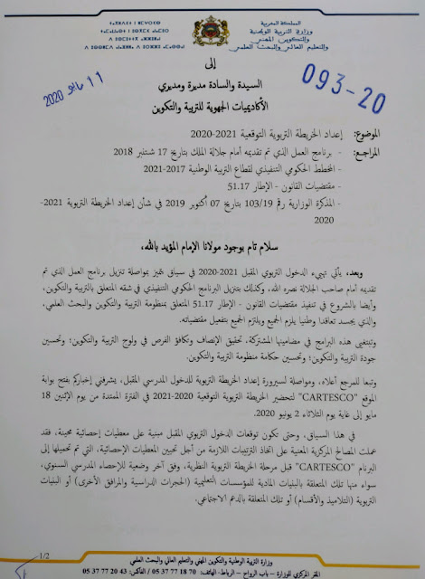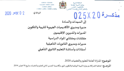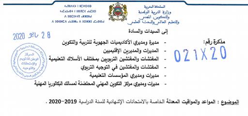 المذكرات الوزارية مذكرات وزارة التربية الوطنية المغربية 2020