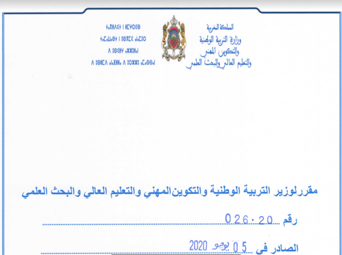 المذكرة رقم 09 بتاريخ 06 فبراير 2008 حو. المذكرات الوزارية الصادرة عن وزارة التربية الوطنية 2000 2010 1 المذكرات الوزارية الصادرة خلال سنة2000. 4 غشت 2020 مذكرة قطاع التعليم العالي عدد 010 369 بتاريخ 29 يوليوز 2020 في شأن تسجيل الطلبة الجدد في المؤسسات الجامعية ذات الولوج المفتوح برسم 2020 2021. 6 غشت 2020 مقرر تنظيم السنة الدراسية 2020 2021 رقم 029 20 بتاريخ 05 غشت 2020.