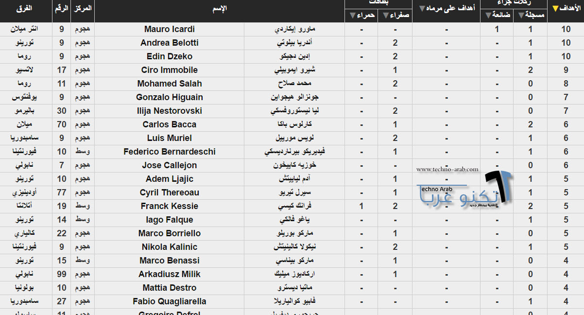 جدول ترتيب هدافي الدوري الإيطالي عن موسم 2016 2017 اليوم السابع