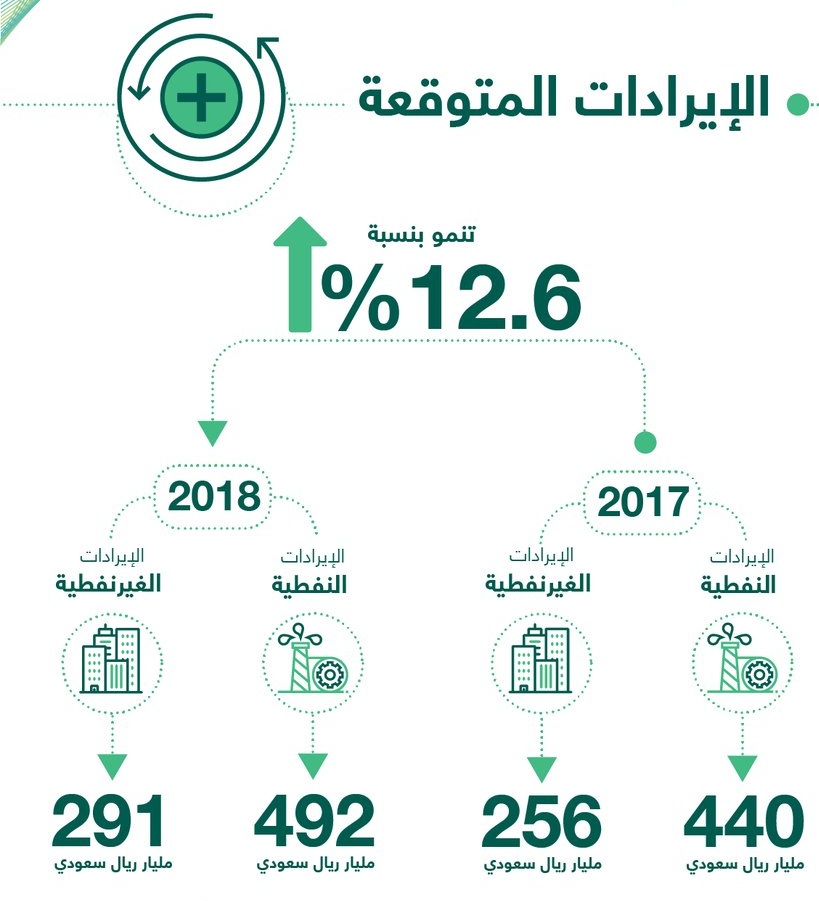 إنفوجراف تفاصيل الإيرادات المتوقعة بميزانية السعودية للعام المقبل
